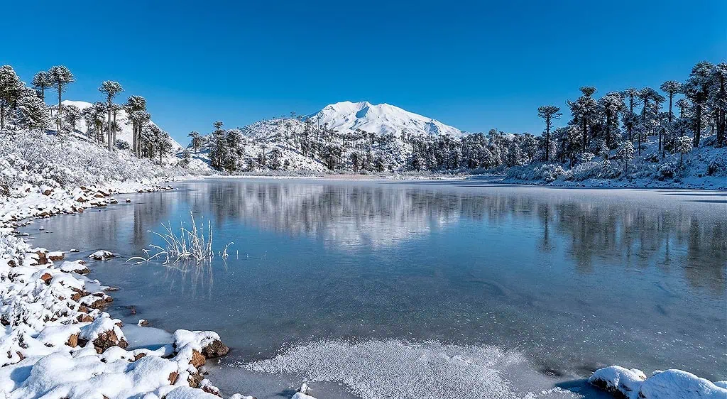 Our journey begins in Caviahue, a charming village set on the shores of Lake Caviahue and surrounded by ancient Araucaria forests—a paradise for nature lovers and photographers alike. Towering above it all is the Copahue Volcano, an active 2,997-meter stratovolcano renowned for its geothermal activity.